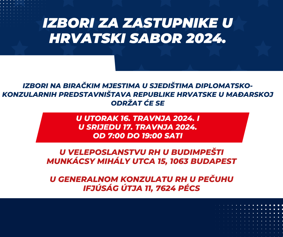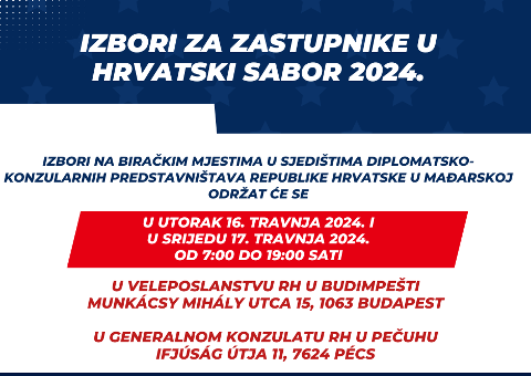 Obavijest o Izborima za zastupnike u Hrvatski sabor 2024. u Mađarskoj