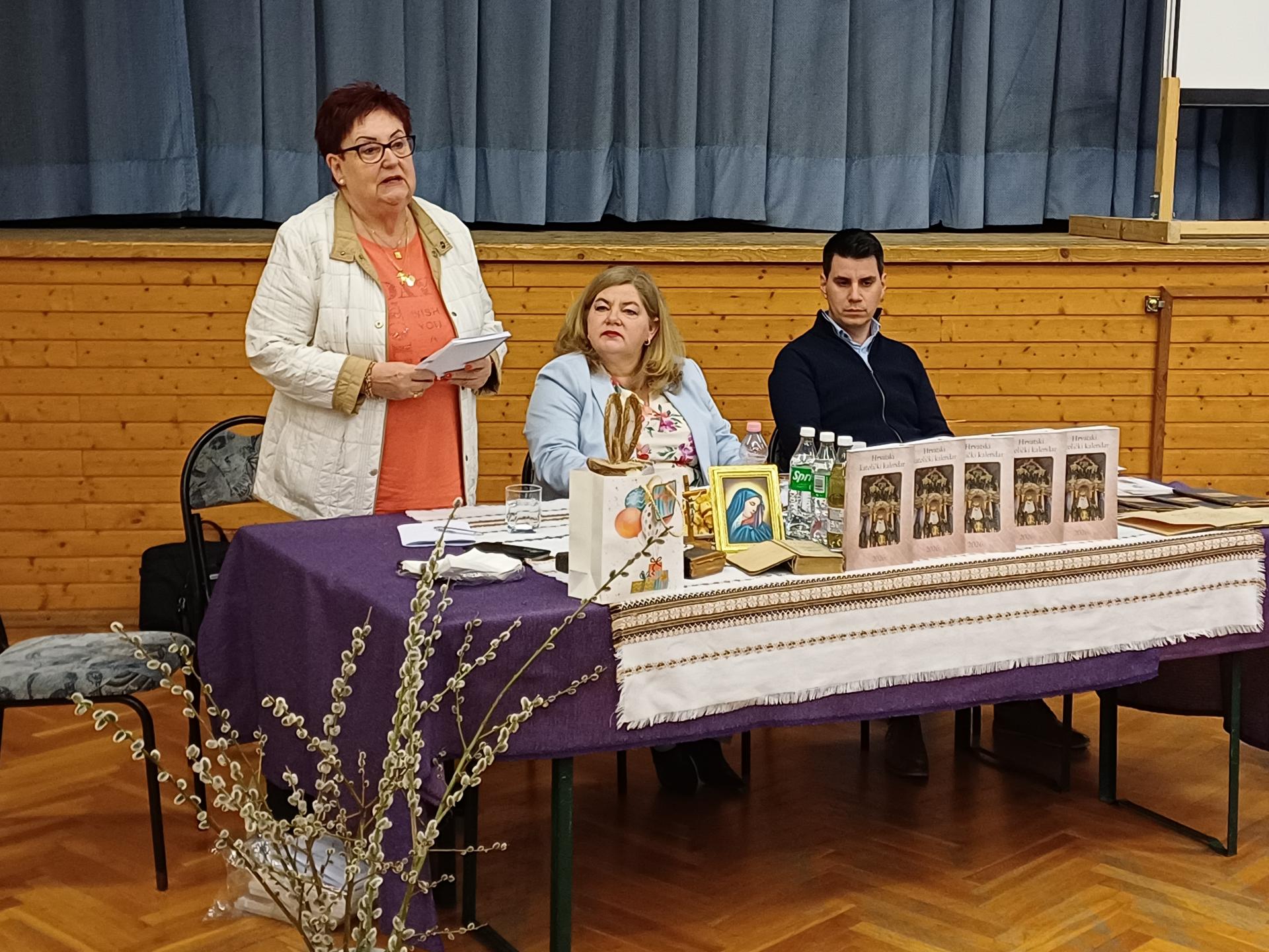 Na početku programa nazočne je pozdravila Marija Pilšić, predsjednica spomenute samouprave. U uvodnom govoru potom se u ime nakladnika obratila Timea Šakan-Škrlin, ravnateljica izdavačke kuće Croatica, koja je ukratko predstavila novi katolički kalendar. Istaknula je da kalendar već petu godinu zaredom izlazi u kontinuitetu, nakon gotovo tri desetljeća stanke.