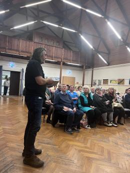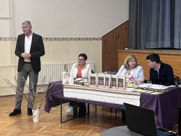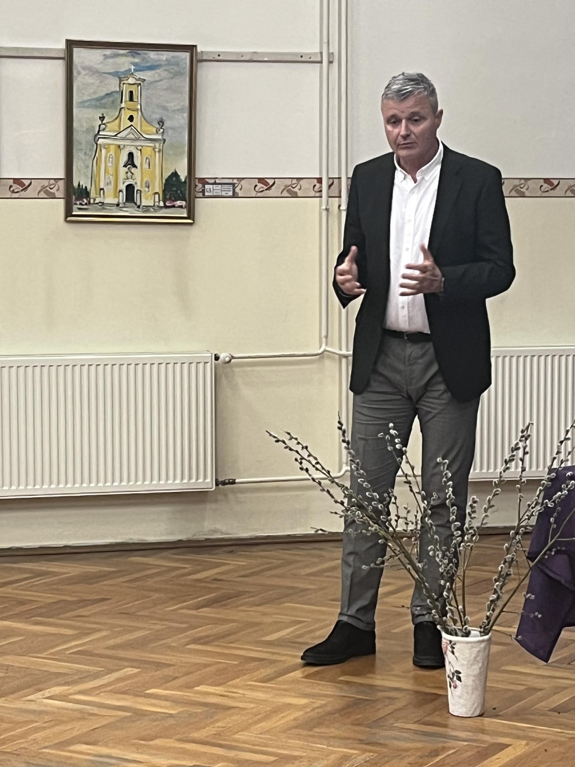 Nakon predstavljanja kalendara nazočnima se obratio Ivan Gugan, nositelj hrvatske narodnosne liste na parlamentarnim izborima. Govorio je o aktualnim pitanjima hrvatske zajednice u Mađarskoj te posebno istaknuo važnost registracije u hrvatski birački popis kako bi glas Hrvata bio snažniji i vidljiviji u javnom i političkom životu zemlje. Naglasio je i da mu je važan neposredan dijalog s pripadnicima zajednice, zbog čega ovih tjedana obilazi regije u kojima žive Hrvati. Kako je rekao, takve susrete ne doživljava kao kampanju, nego prije svega kao razgovor s ljudima na terenu. U slučaju izbora najavio je i uvođenje tzv. konzultacija, odnosno redovitih termina za prijem građana, kako bi pripadnici hrvatske zajednice mogli izravno iznijeti svoja pitanja i prijedloge.