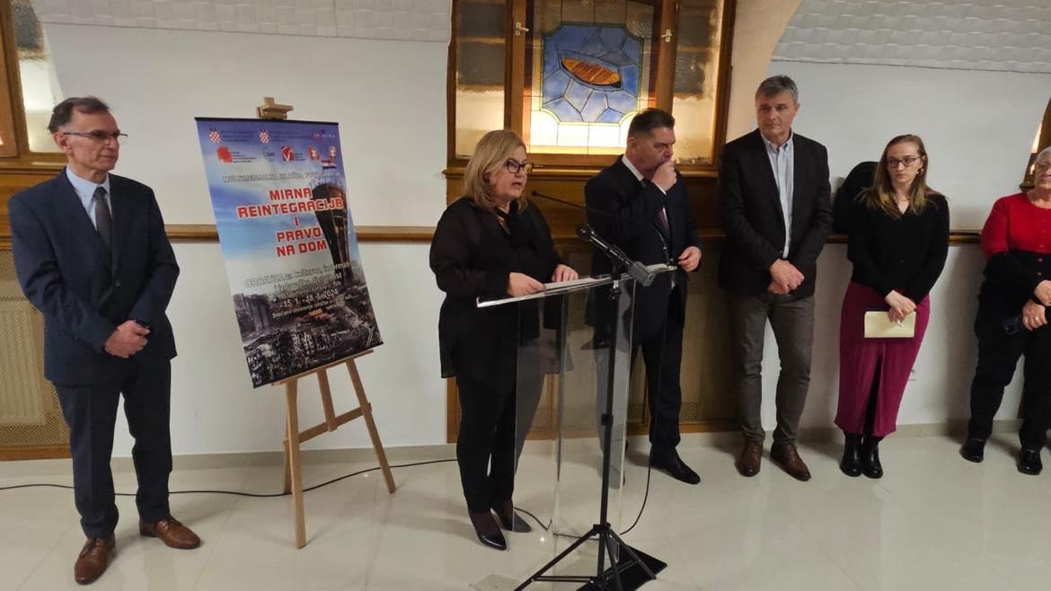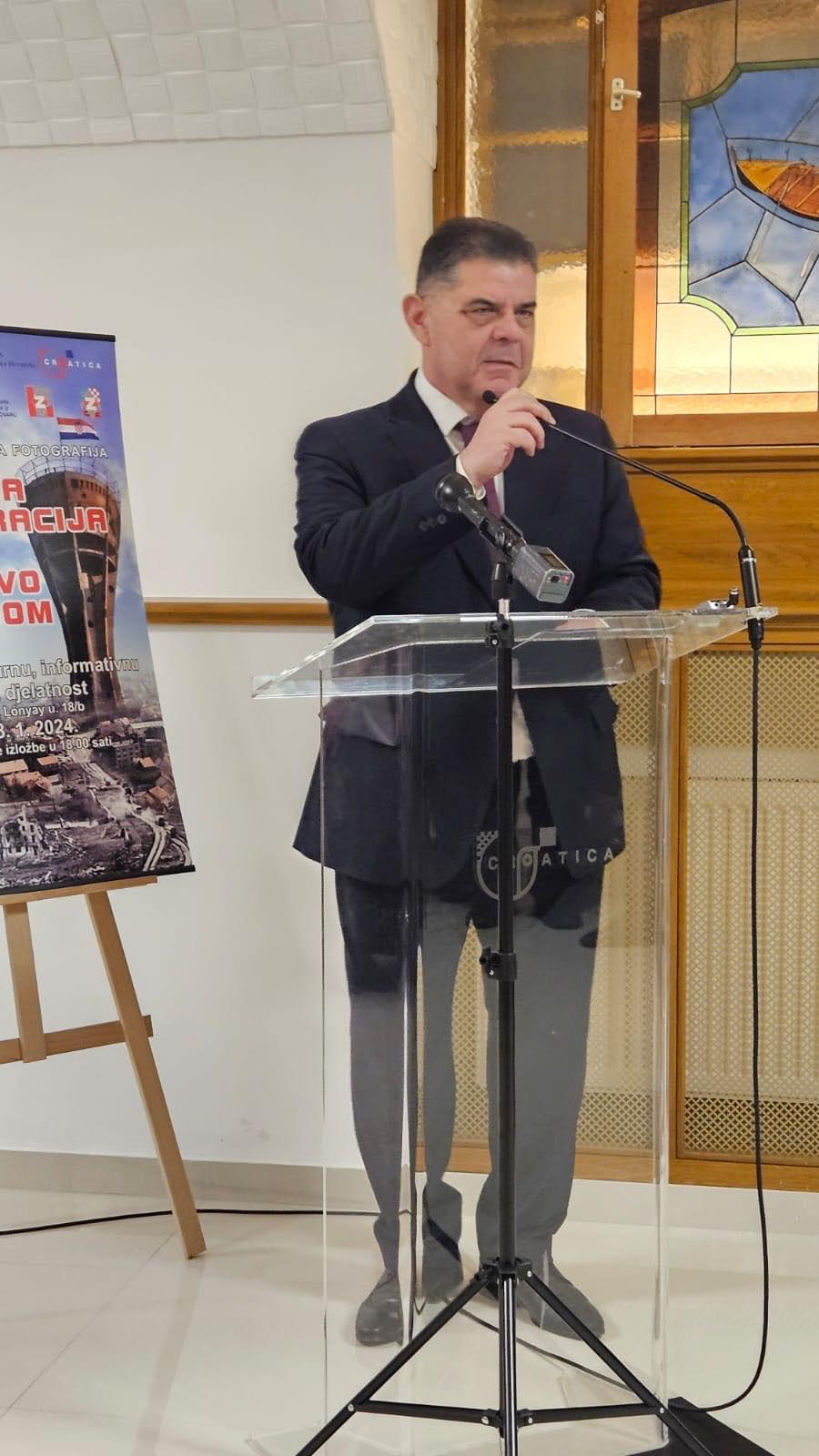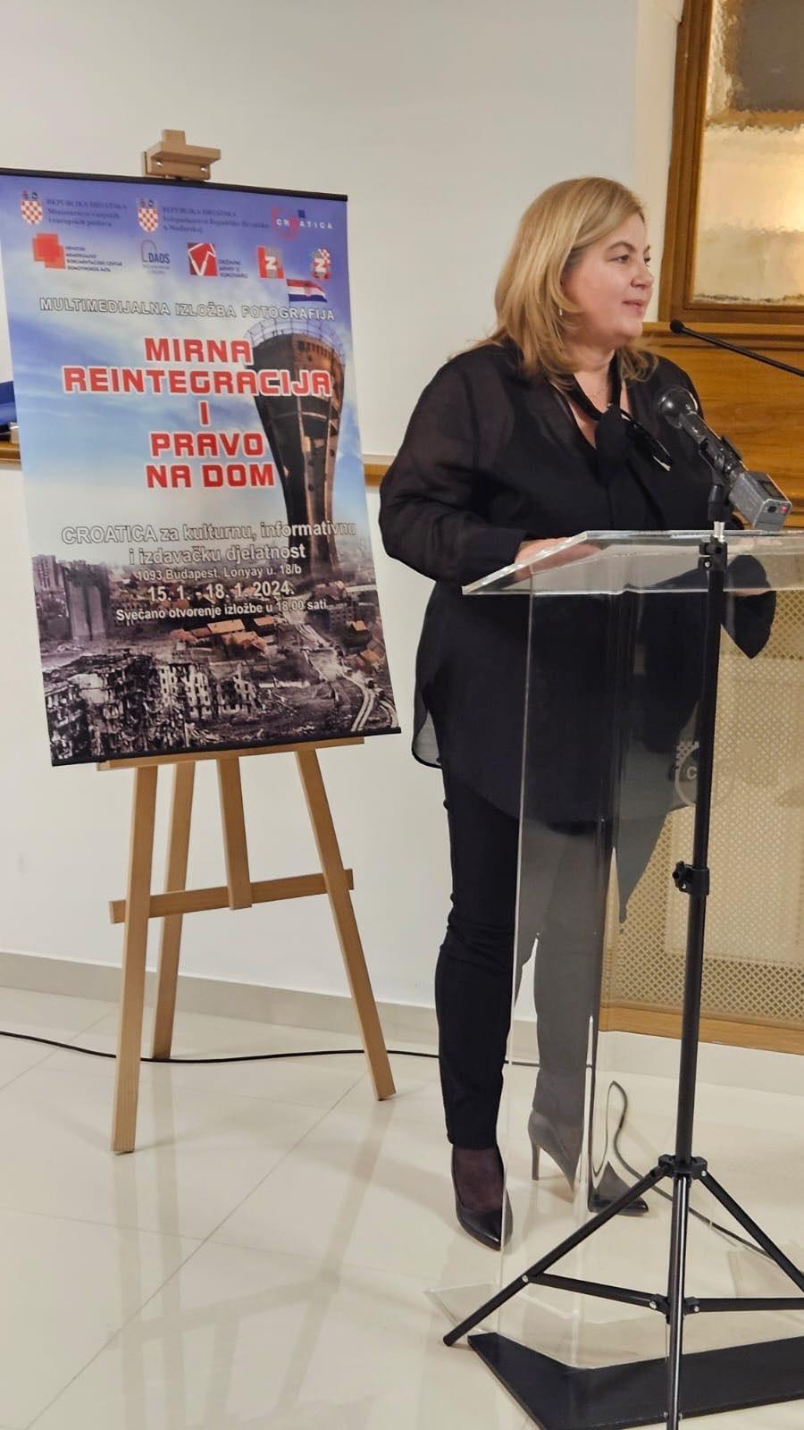 Nakon glazbenog uvoda, ®enskog pjevačkog zbora „August Šenoa” iz Pečuha, veliki broj okupljenih najprije je pozdravila ravnateljica Croatice, Timea Šakan-Škrlin. Ravnateljica je na hrvatskom i engleskom jeziku najavila izloľbu koja prema njezinim riječima, predstavlja duboko ukorijenjenu priču o povratku i zajedništvu, te istakla veliki utjecaj međunarodnog priznanja RH na zajednicu Hrvata u Mađarskoj. Uslijedili su pozdravni govori predsjednika HDS-a, Ivana Gugana i predsjednika Zajednice povratnika Osječko-baranjske ľupanije Branka Peka, čije govore je prevela na engleski jezik, drugi tajnik veleposlanstva RH u Mađarskoj, Martina Poljak. Veleposlanik RH u Mađarskoj, Mladen Andrlić je svojim govorom sluľbeno otvorio izloľbu.