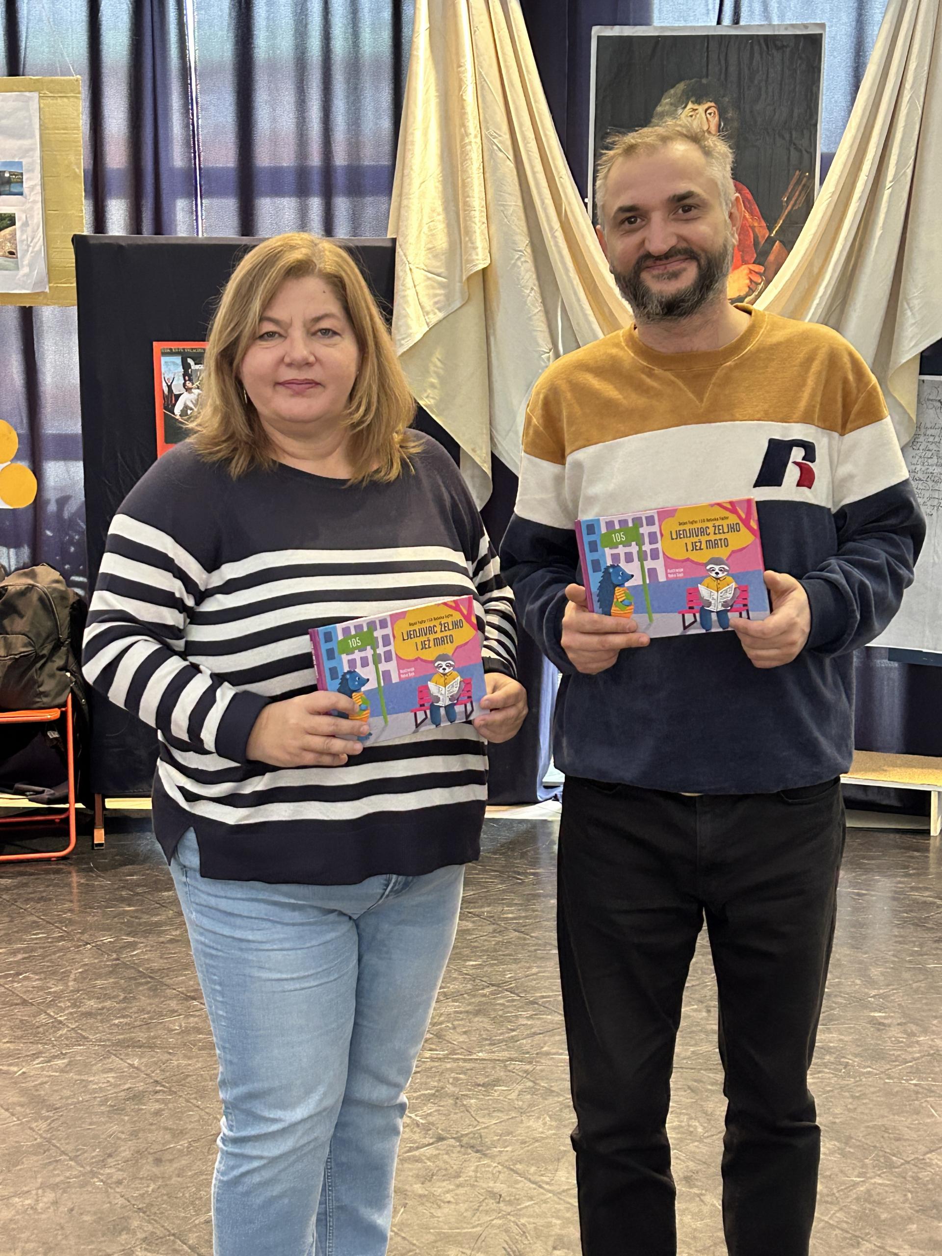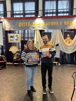 Fajfer Dejan, a könyv társszerzője, aki egyébként hivatásos színész, megosztotta a gyerekekkel, honnan merítette az ötletet a történethez, amelyben ®eljko és Mato együtt indulnak kalandos útjukra, hogy megtaláljanak egy elveszett könyvet. A mese központi üzenete a barátság, az összefogás és az olvasás fontossága. A gyerekeket nemcsak a mesével varázsolta el, hanem egy interaktív kvízt is tartott, amely vidám perceket és sok nevetést hozott. A program zárásaként egy vidám, állatokról szóló dalt énekelt, amelybe a gyerekek is örömmel bekapcsolódtak.