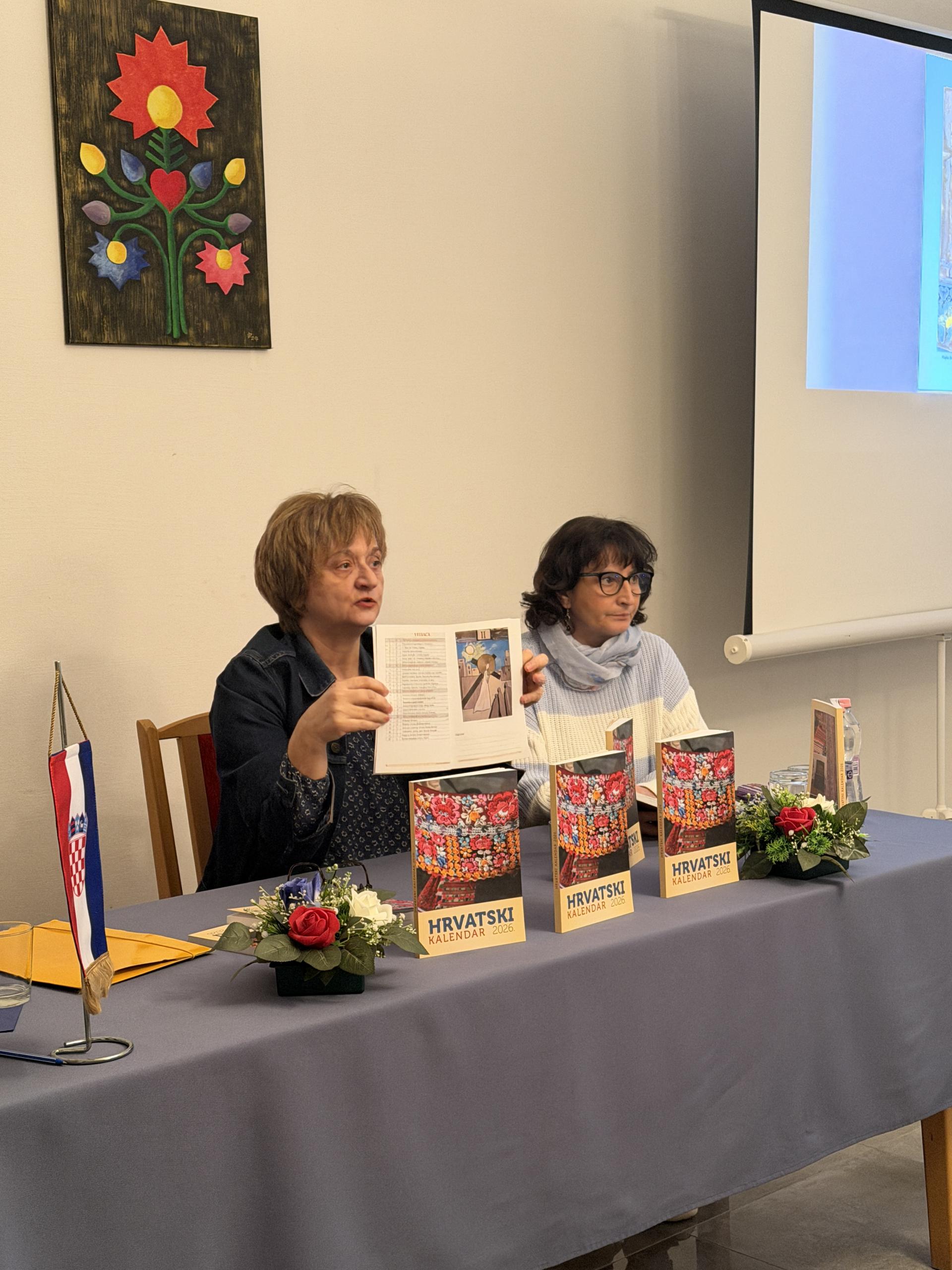 A házigazdák nevében Matoláné Proszenyák Hajnalka az intézet vezetője köszöntötte a megjelenteket, köztük Skrlinné Sákán Tímeát, a Croatica igazgatóját, Blazsetin Brankát, a Horvát Kalendárium 2026 szerkesztőjét, valamint Josip Drvoderić goricsáni plébánost. A szerkesztővel Blazsetin Bernadette újságíró beszélgetett, aki felhívta a figyelmet az előszó gondolatára, miszerint a Horvát Kalendárium a magyarországi horvátok „kincsesládája”: egyszerre a kor és a kultúra kézzelfogható lenyomata, ugyanakkor egy nép lelkének őrzője is.